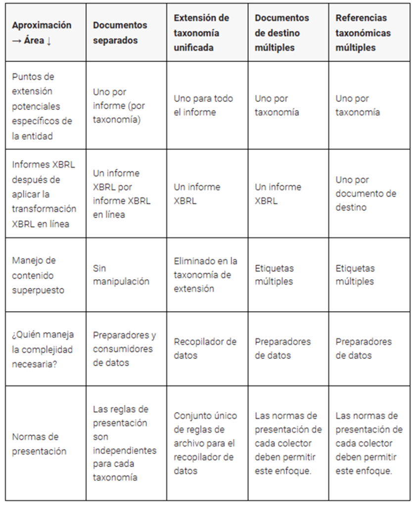 El estándar XBRL ofrece algunos trucos inteligentes para este escenario. Las opciones van desde documentos separados para cada taxonomía hasta múltiples referencias de taxonomía, documentos de destino y extensiones unificadoras, cada una con su propia combinación de simplicidad y complejidad. Nuestros presentadores desglosaron qué enfoque funciona mejor para cada situación, ayudando a los preparadores y recopiladores de datos a navegar por este panorama de informes simplificados y de usos múltiples. La complejidad, el contenido superpuesto y los desafíos de cumplimiento fueron parte de la mezcla mientras explicaban cómo hacer que los informes multipropósito sean más efectivos.
