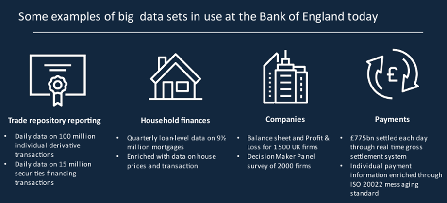 Hoy hablaré sobre los pasos que se están dando en el Banco de Inglaterra, entre nuestras áreas de datos y tecnología, para actualizar nuestra estrategia de datos y análisis.